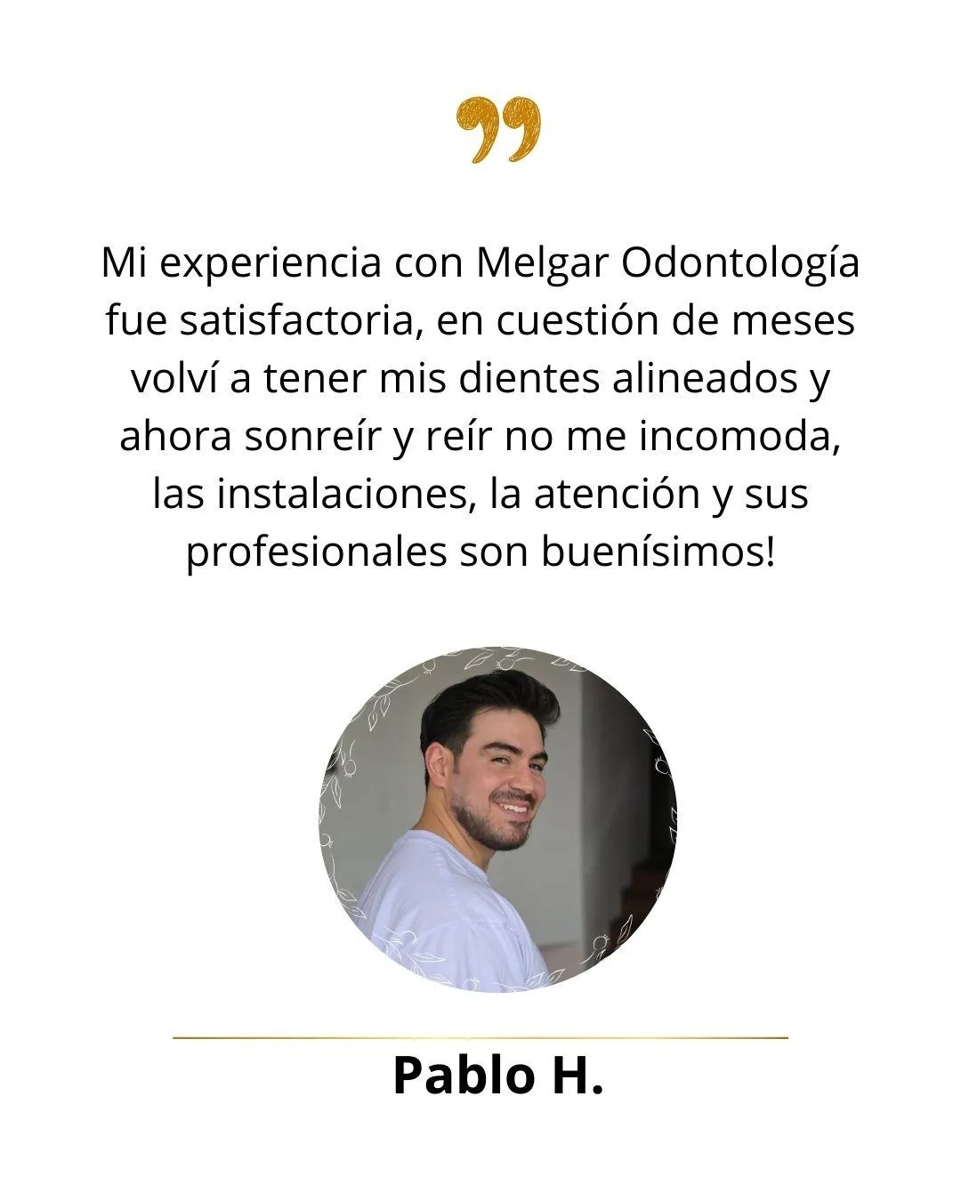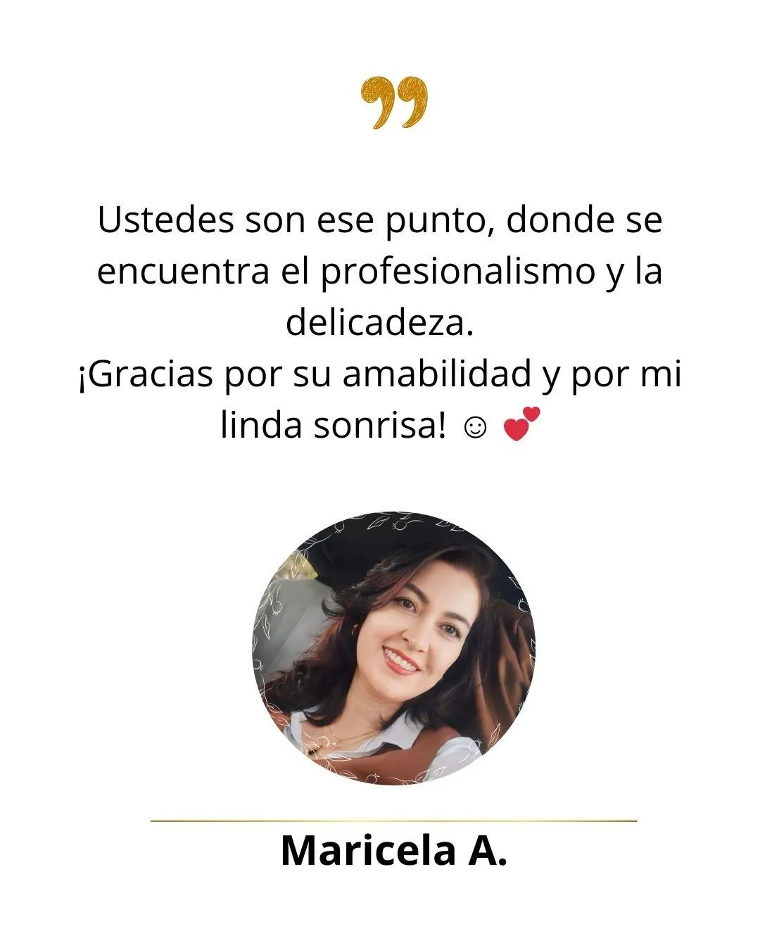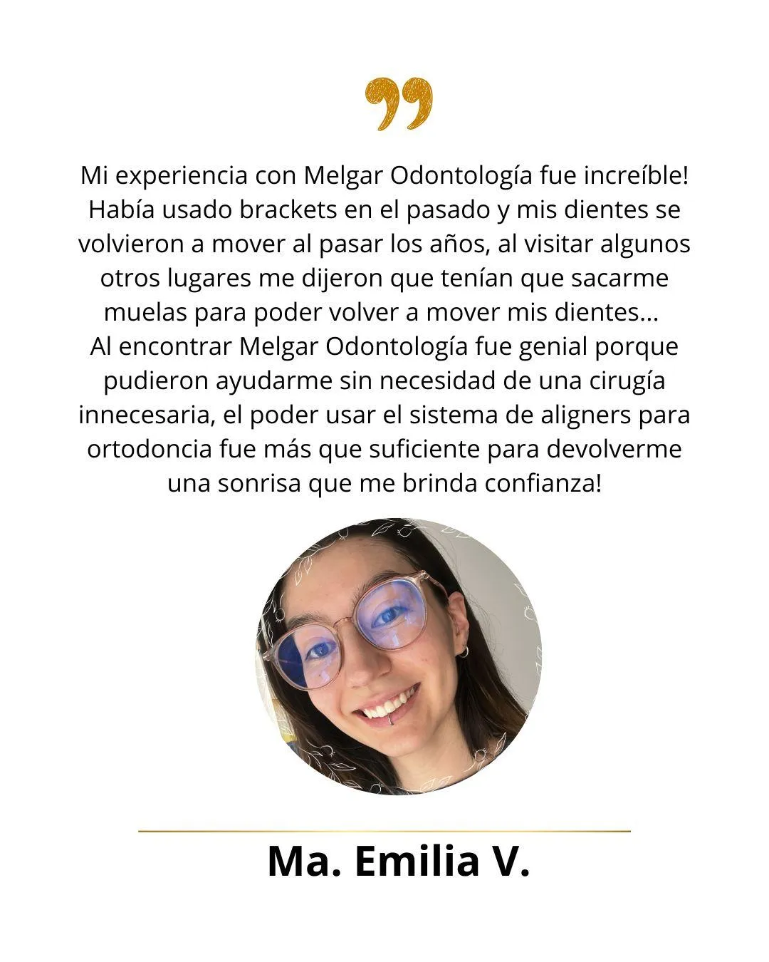 El mejor servicio !!!! La Doctora Melgar es espectacular y el resto del personal muy cálido y profesional. Hice mi tratamiento con aligners y aunque tuve que salir del país, incluso al otro lado del mundo me enviaron mis nuevos aligners y la Doctora ha estado pendiente de mi progreso en todo momento. Mis padres también se atienden en esta clínica y no puedo estar más feliz 🙂!!! Recomendado al 10000%